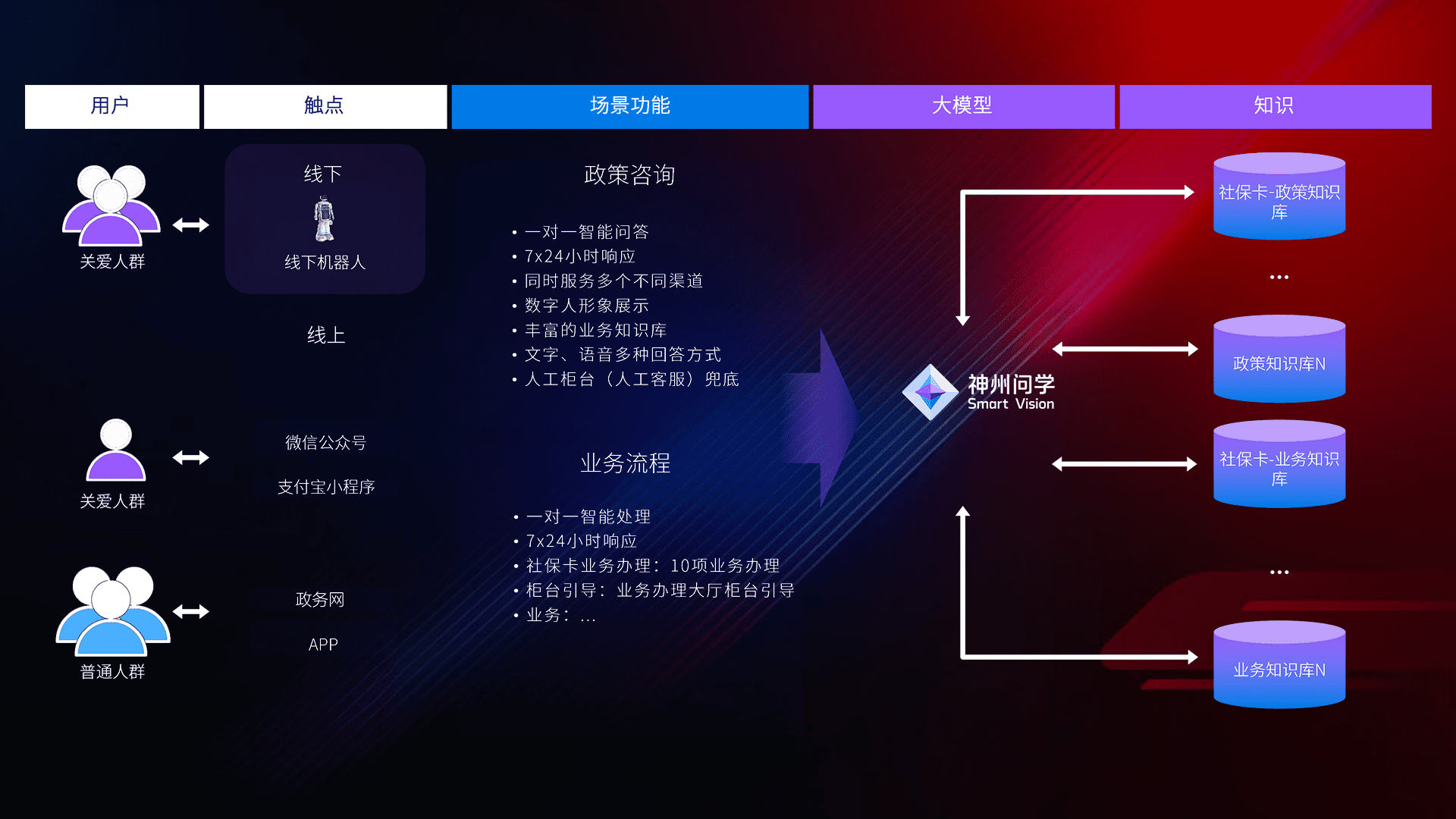 • 线上线下全覆盖:线上提供微信公众号、、、、支付宝小程序、、、、政务网、、、app多种渠道,,与线下机器人形成完整服务体系。。。